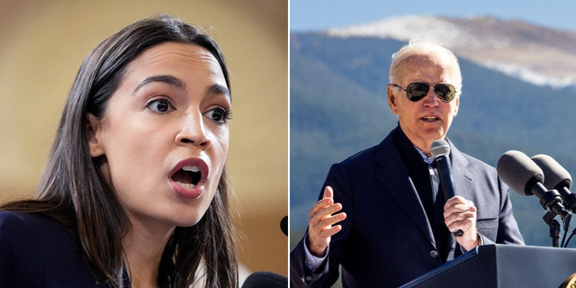 Rep. Alexandria Ocasio-Cortez, D-N.Y., criticized President Biden for not including illegal immigrants in his pardon for those federally convicted of simple marijuana possession. (Drew Angerer/Getty Images and Michael Ciaglo/Getty Images)