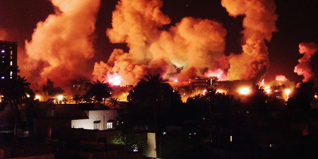 On March 20, 2003, United States forces bombarded the Iraqi capital of Baghdad with aerial strikes and coordinated a military offensive across the country. (Getty Images)